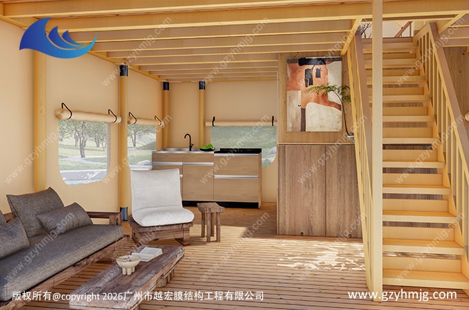 轻奢帐篷酒店搭建在大自然风景中,是完美的与大自然融汇成一副优美的画,有着独特的风格,安置在大自然的怀抱,在这样的居住环境下会非常的舒适,乐享其中。所以,帐篷酒店是如今最受欢迎的露营住宿,是运营商重视的轻奢帐篷酒店。