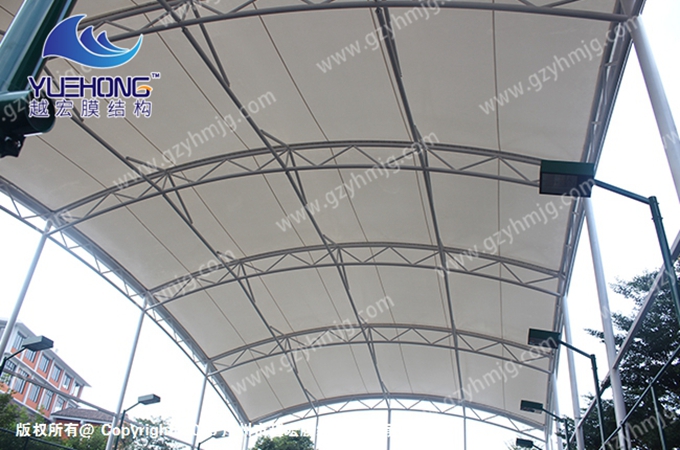 越宏膜结构厂家以多年的行业经验,篮球场膜结构遮阳棚的造型个性化,按照用户的需求定制设计,膜材自洁功能强,使用寿命长。是一款新型、时尚的建筑结构。